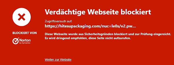 Für die Phishing-Seite wird bereits eine Warnung ausgegeben.