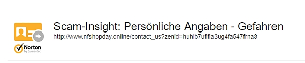 Der Link führt auf die Webseite „nfshopday.online“. Dass es sich um Plagiate (Fälschungen) handelt, dürfte klar sein. Das bedeutet nicht, dass diese schlecht sein müssen. Allerdings bei einer Webseite ohne Impressum und Ansprechpartner, würde ich garantiert nichts bestellen. Allerdings will ich jetzt nicht allzu voreilig sein und bin auf das Kontakt-Formular gegangen. Und siehe da, Norton hat aufgepasst.